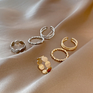 線條感麻花可調式戒指-金(3件套)