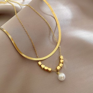 雙層疊戴小方塊珍珠鎖骨鍊